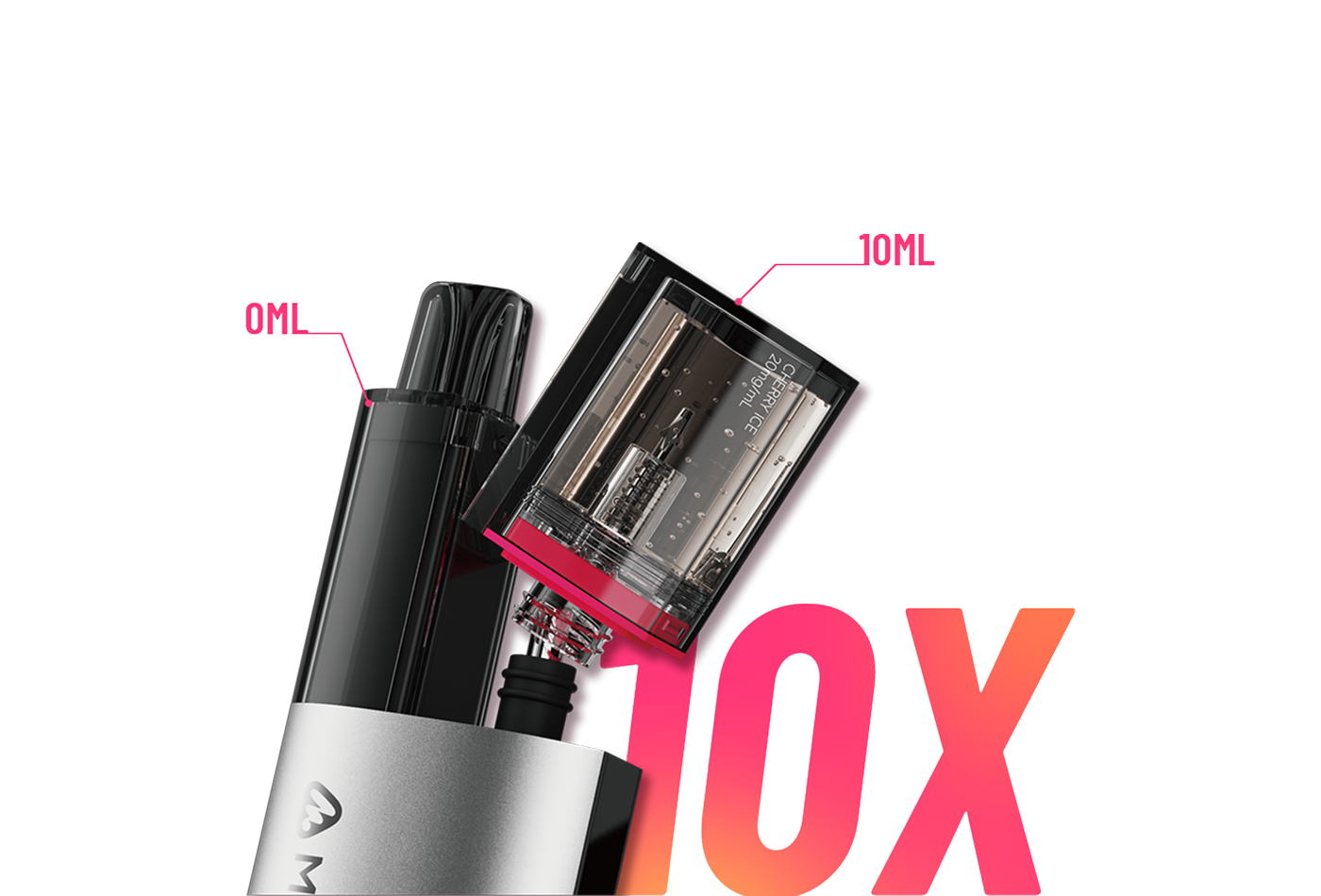 10ml e-juice container delivers up to 10X the puffs, for non-stop, satisfying vaping all day long.